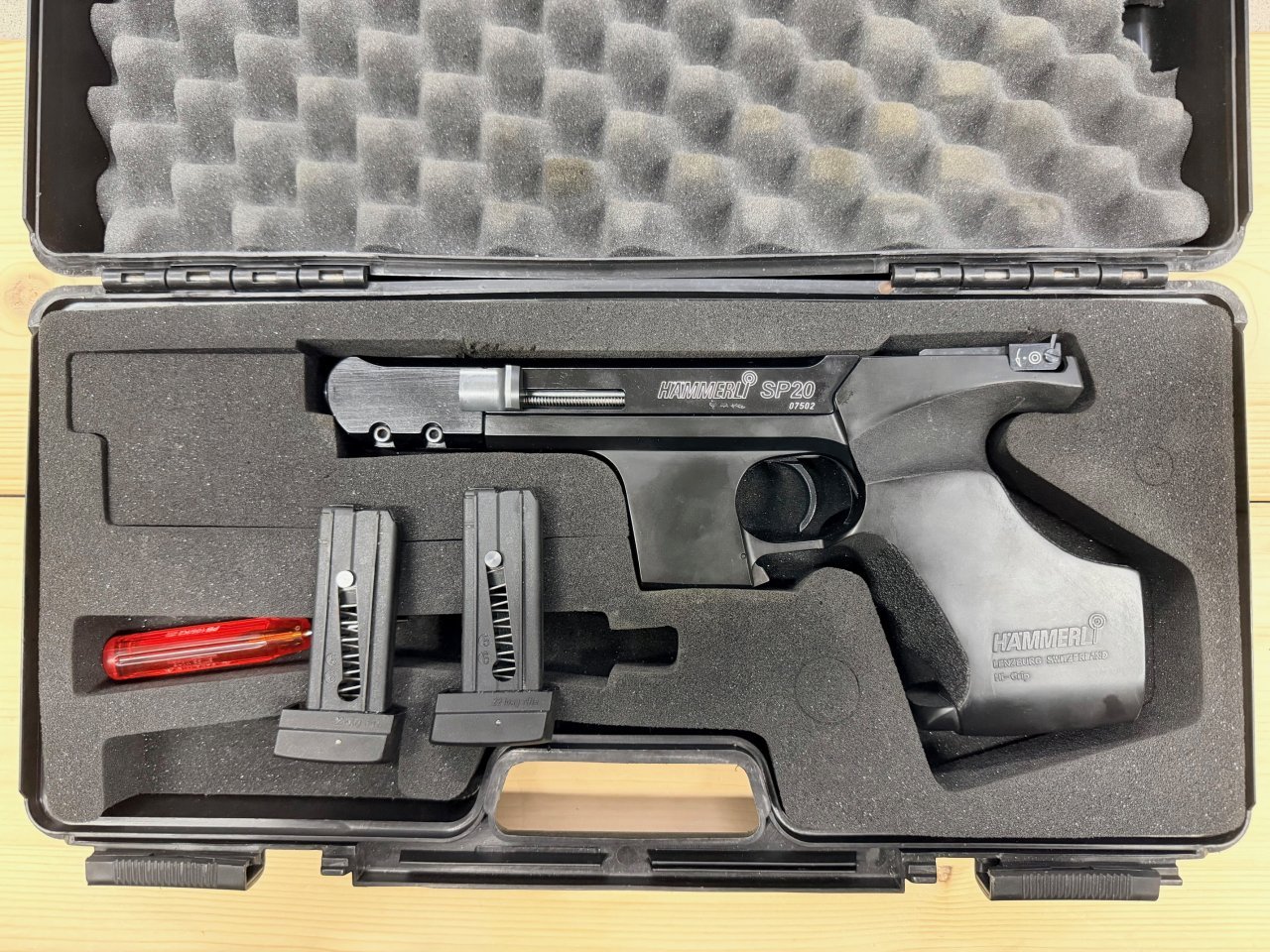 | Sportovní, samonabíjecí pistole Hammerli, Model: SP20, Ráže: .22LR se 2ks zásobníků a kufříkem. Lehce používaná, kompletní v perfektním stavu. Vyrobeno ve Švýcarsku | |