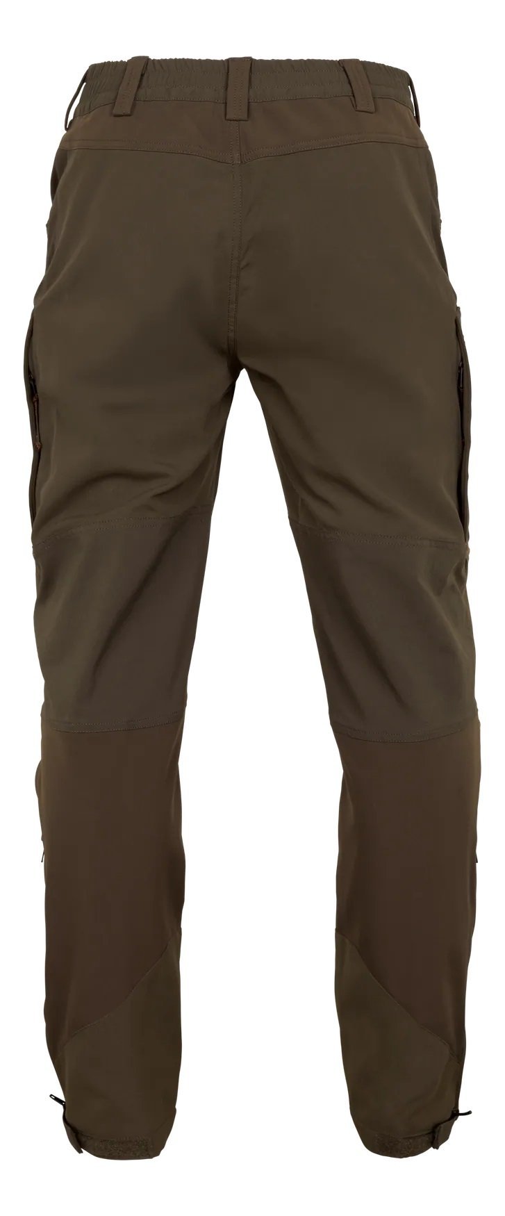 Zesílené spodní lemy nohavic zvyšují životnost kalhot při pohybu v hustém porostu nebo kamenitém terénu. Celková konstrukce je navržena tak, aby kalhoty obstály při častém používání v outdooru i při lovu.