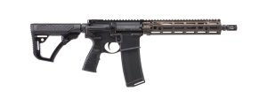 Puška je vybavena ergonomickou pažbou Daniel Defense a pistolovou rukojetí.