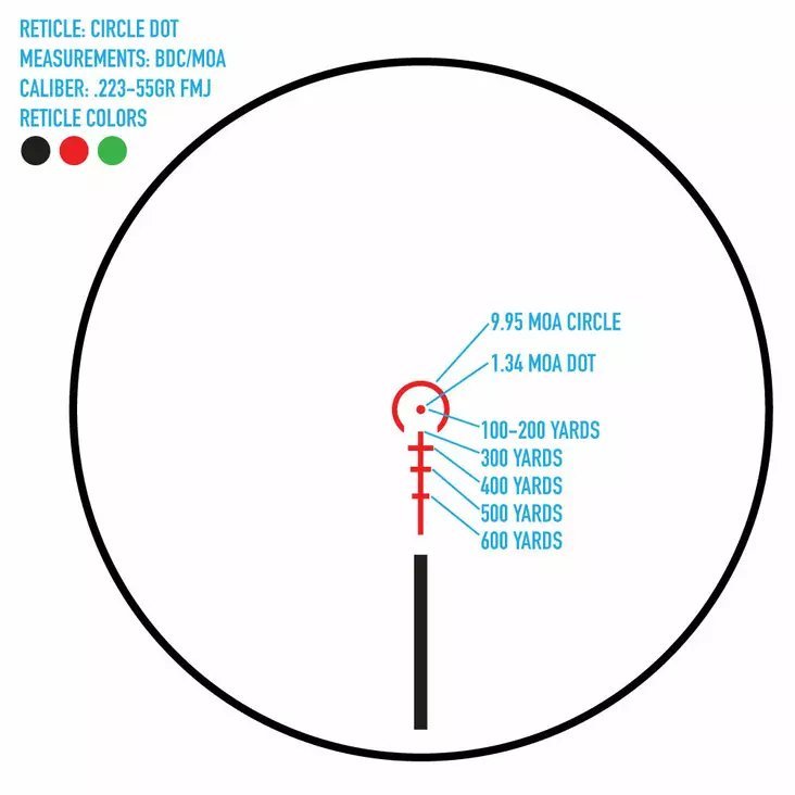 Puškohled RapidStrike 1–6x24 nabízí široké zorné pole a variabilní zvětšení ideální pro rychlé přechody mezi cíli. Díky záměrnému kříži Circle Dot s možností osvětlení v několika barvách lze zvolit optimální kontrast v různých světelných podmínkách. Vysokou odolnost zajišťuje hliníkové tělo s plně vícenásobnou povrchovou úpravou čoček a krytím IP67.