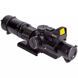 - Kombinace LPVO puškohledu 1–6× a horního kolimátoru Impact Mini