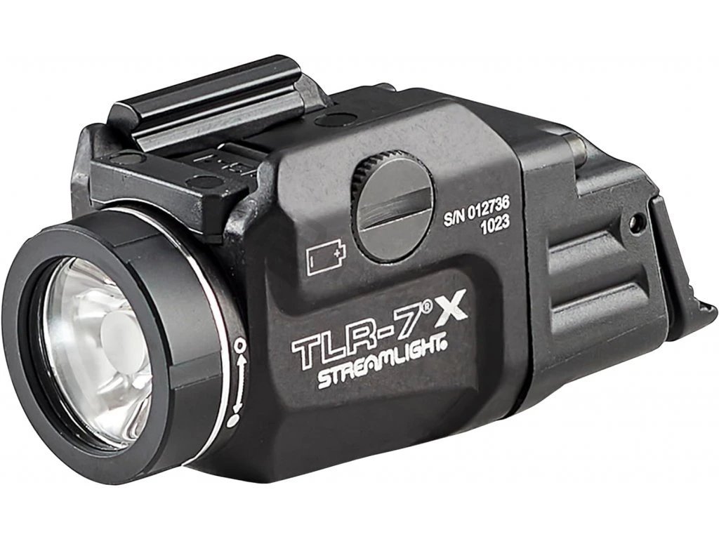 Podvěsná pistolová svítilna z řady TLR — navržená pro kompaktní zbraně. Nízkoprofilový design minimalizuje riziko zachycení při manipulaci, rychloupínací montáž na lištu umožňuje instalaci bez nářadí a speciální bezpečnostní pojistka zabraňuje náhodnému zapnutí a šetří baterii.