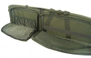Tento taktický batoh je vhodný pro pušky o celkové délce maximálně 43” (109 cm). Materiál: Cordura 1 000, extra silná pěnová výplň pro maximální ochranu. Dvě externí kapsy pro příslušenství, které se otevírají na zip ze tří stran pro lepší manipulaci. Větší kapsa má rozměry 47 x 26 cm. Menší kapsa 29 x 25 cm. Polstrované rameni popruhy, bederní popruh pro maximální pohodlí při nošení.