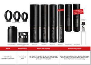 - Modulární design – výměnné přední moduly umožňují jeden tlumič přizpůsobit více rážím.