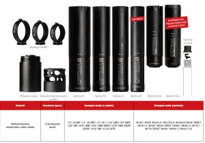 - Optima 60 – velký průměr (?60 mm), určen pro silnější lovecké ráže, vysoká účinnost útlumu.